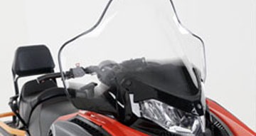 Снегоход энергономичен: перед поездкой можно легко отрегулировать высоту руля и жесткость подвески. Тепла и комфорта добавят подогрев рукояток и курка газа, розетки для обогрева визеров на шлемах водителя и пассажира. Ручки для пассажира оснащены ветро-защитой и подогревом. Возможность за счет съемного модульного сидения увеличить багажное пространство. Приборная панель оптимально информативна для дальней поездки — все это делает «Фронтьер 1000» идеальным снежным крузером.