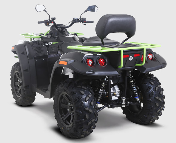 Продуманная эргономика обеспечивает высокий уровень комфорта как для водителя, так и для пассажира. У модели двухуровневое сиденье, благодаря которой пассажиру гарантирован хороший обзор. Для дальнего путешествия вдвоём у ATV предусмотрены передняя и задняя багажные площадки грузоподъёмностью 40 и 80 кг соответственно и два перчаточных ящика объёмом 9 и 16 литров. В базовую комплектацию входит фаркоп. Изменилось передаточное число редукторов – благодяря этому увеличилась максимальная скорость.