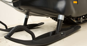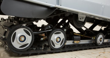 Передняя подвеска – телескопическая с ходом 150 мм. Ход задней подвески 190 мм. Гидропневматичсекий амортизатор с пружинами кручения обладает достаточным запасом энергоёмкости, чтобы обеспечить снегоходу плавный ход на любой поверхности.